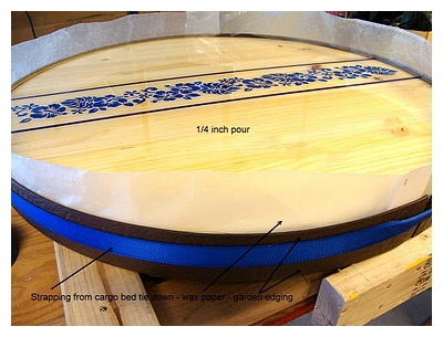 OPTION 1 -- MOST PROFESSIONAL Thick pour epoxy - use for pours over 1/4 inch and with a leak-proof edge all around the project. The most professional, commercial grade bar top and table top system/method available --- GOTO OPTION 1 - Bio Clear 810 - the most non yellowing epoxy available. Most professional method/results - Unlike the 'craft' epoxies promoted on other web sites, this is the one used by the professionals - click on this option to learn more. Use this 1/4 inch system if you are inserting objects into your table top.